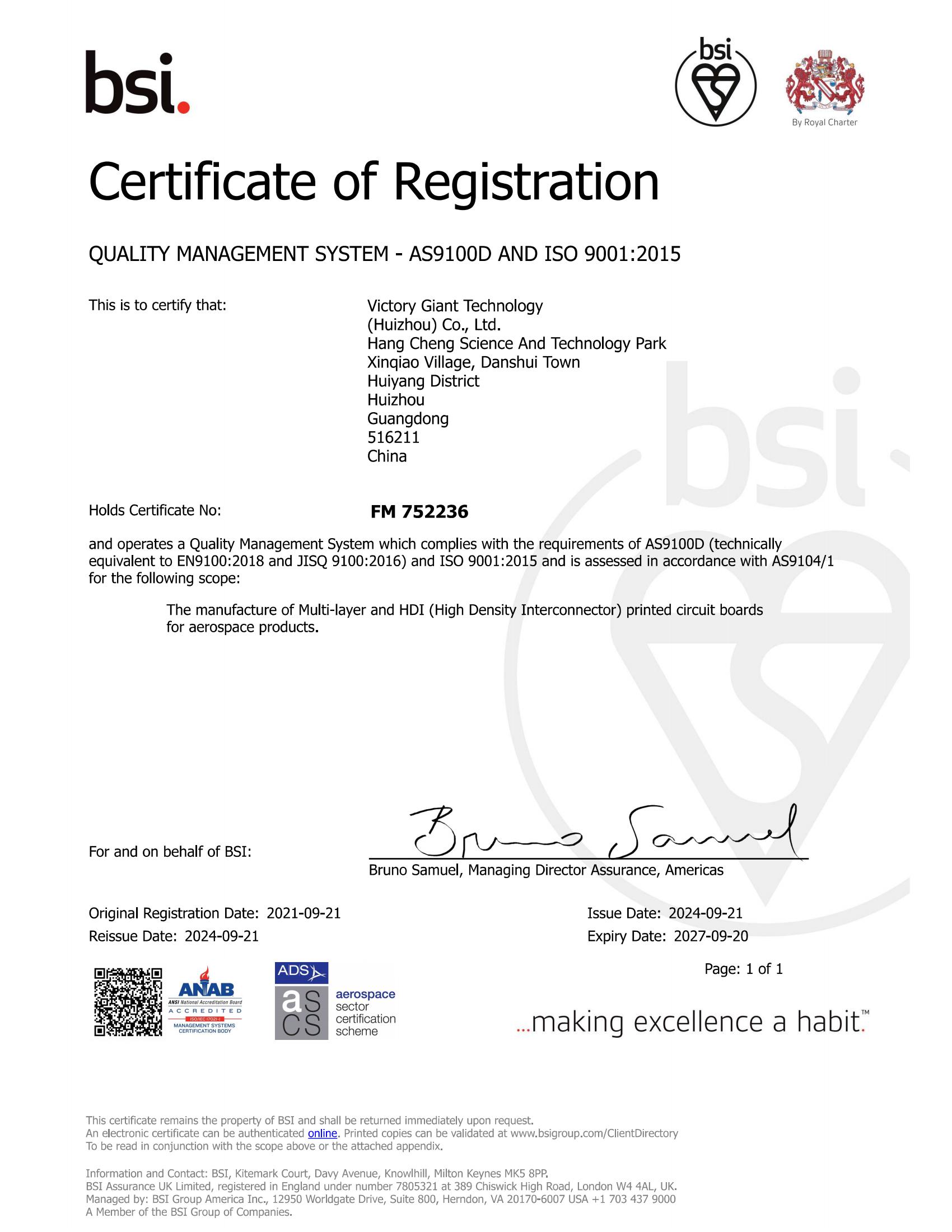 AS9100D 航空航天質量管理體系