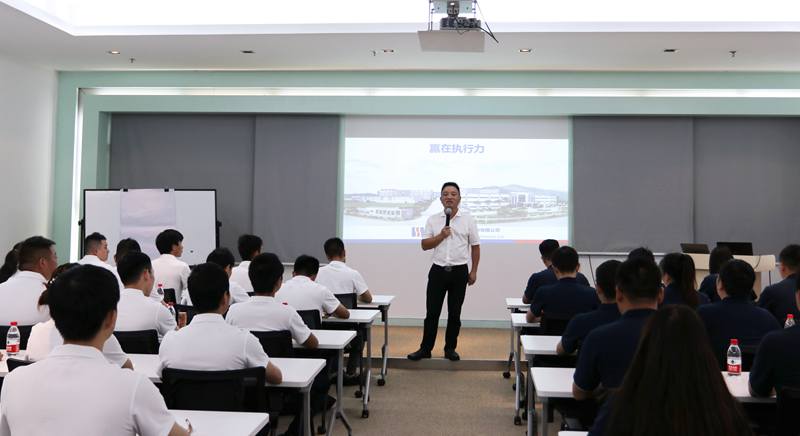 典禮結束后,開學第一課正式進行,分別由CEO趙啟祥、執行院長張如萍和總經理助理王輝擔任講師。趙總以“贏在執行力”為主題,從“責任心、有效執行、結果導向”三個維度出發,深度剖析了執行力的關鍵,號召學員們在工作中要鑄造強烈的責任心,高效執行。趙總幽默風趣的上課方式,專業的解答,引得學員們掌聲不斷。趙總引入大量案例,結合他自身從業經歷、管理經驗,從公司實際的案例出發,帶領同學們積極思考、探尋問題根源,以便加深學員理解。在授課當中,趙總將公司“沒有如果,只有結果;沒有苦勞,只有功勞”的工作理念貫穿始終,使得此次課程極具指導性和實操性。