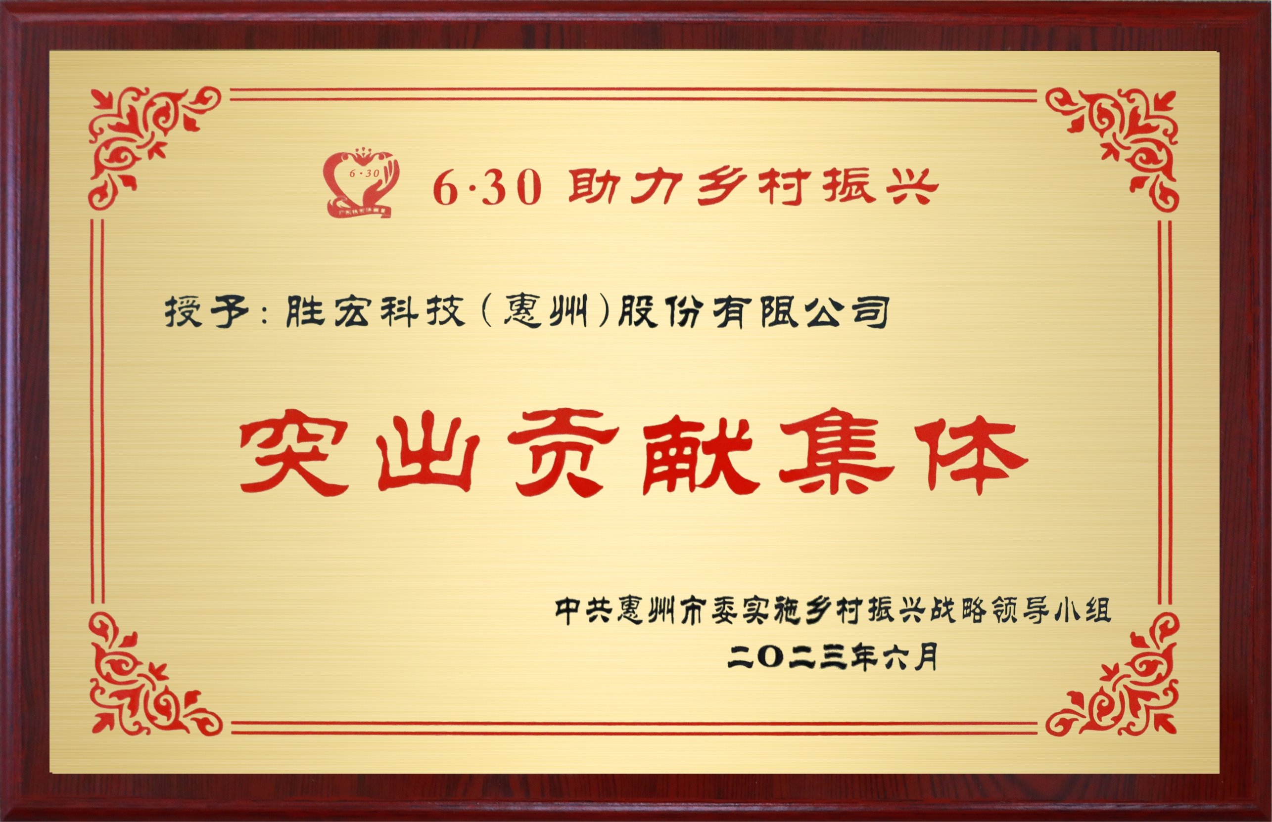 榮獲惠州市鄉(xiāng)村振興“突出貢獻(xiàn)集體”